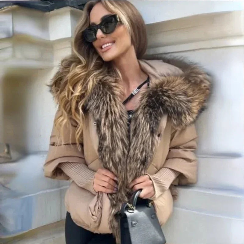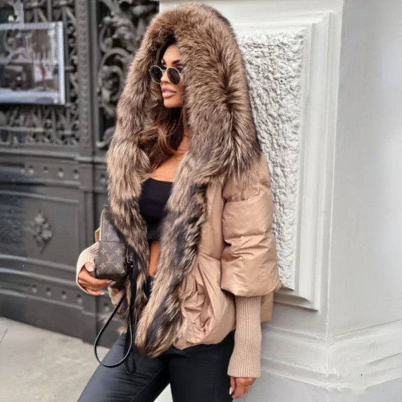 Elevate your winter wardrobe with the Winter Jacket for women. Featuring a luxurious real fox fur hood and soft duck down filling, this short, oversized coat provides warmth, comfort, and a stylish streetwear look. Its wide-waisted, loose fit ensures ease of movement while maintaining a chic silhouette.