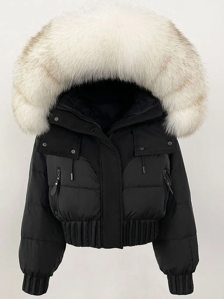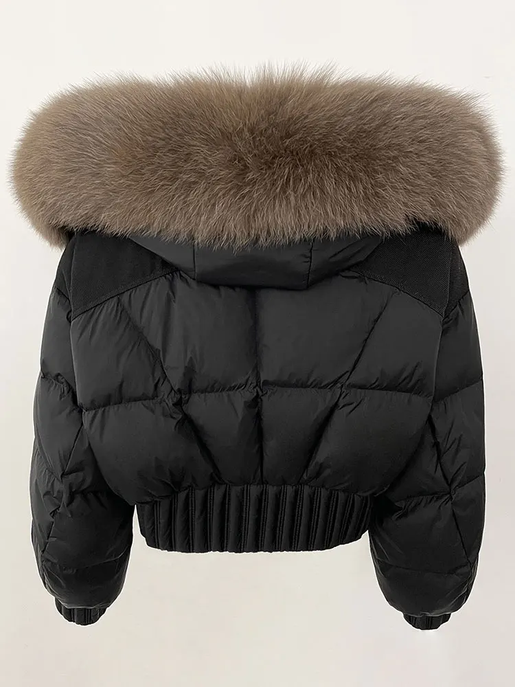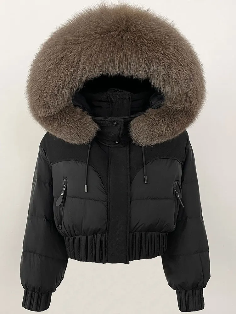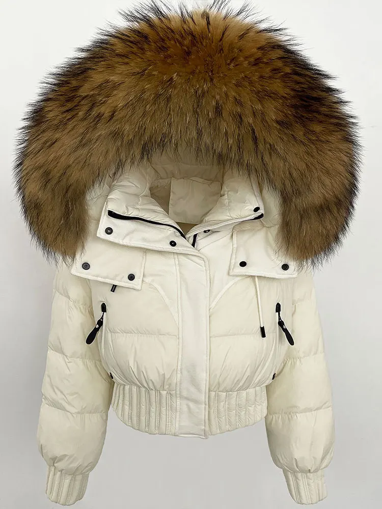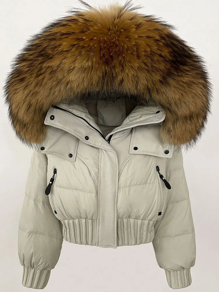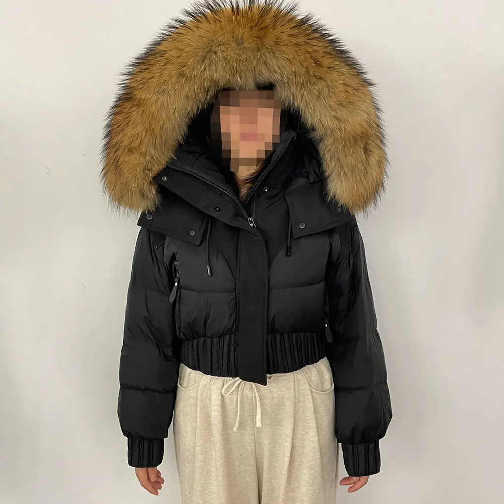 CXFS 2025 Winter Jacket Women Short Natural Real Raccoon Fox Fur Collar Hooded White Duck Down Coat Thick Warm Casual Outerwear