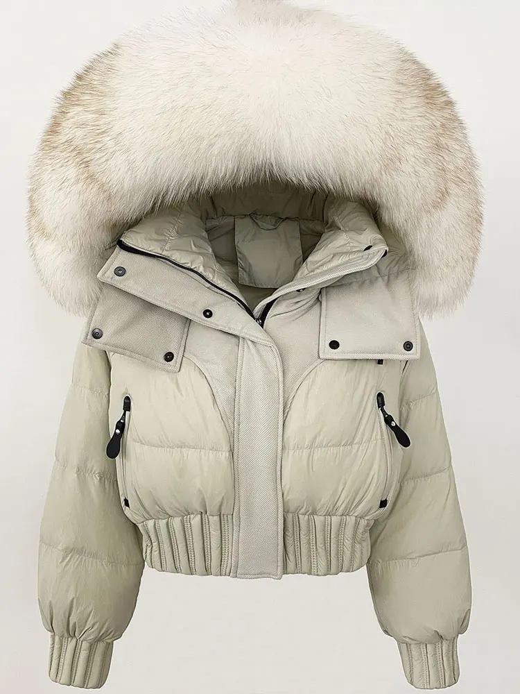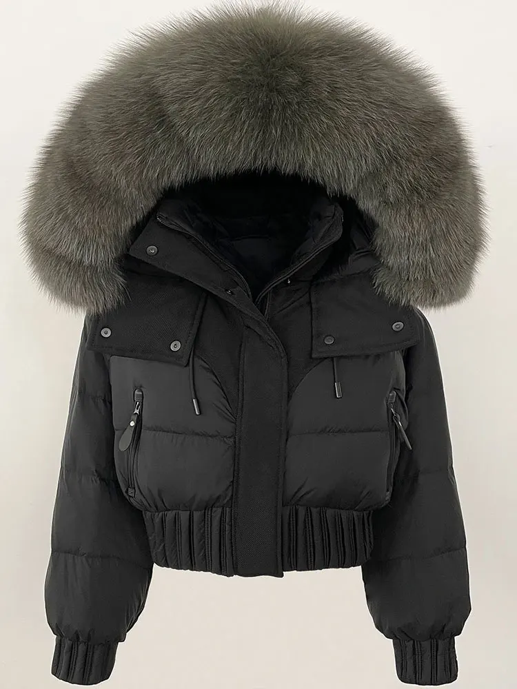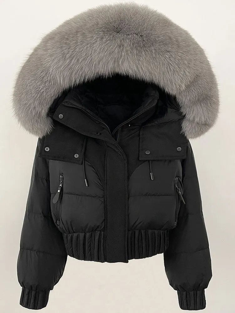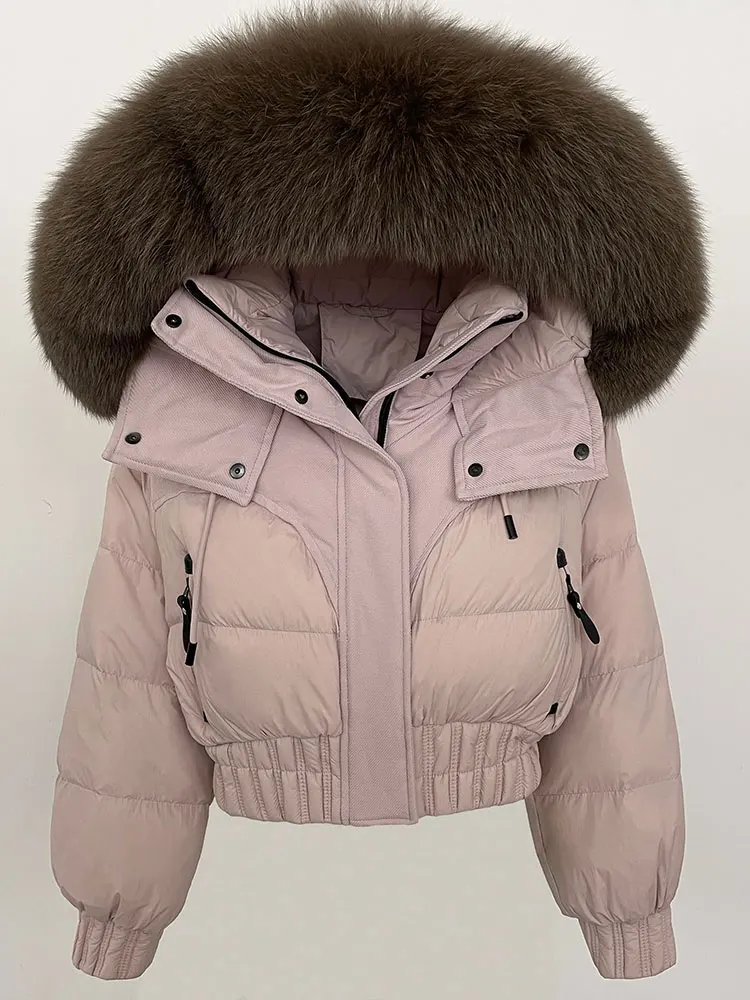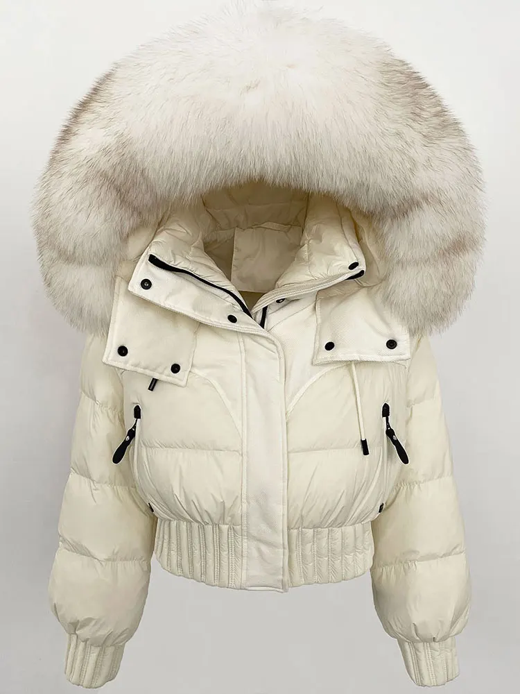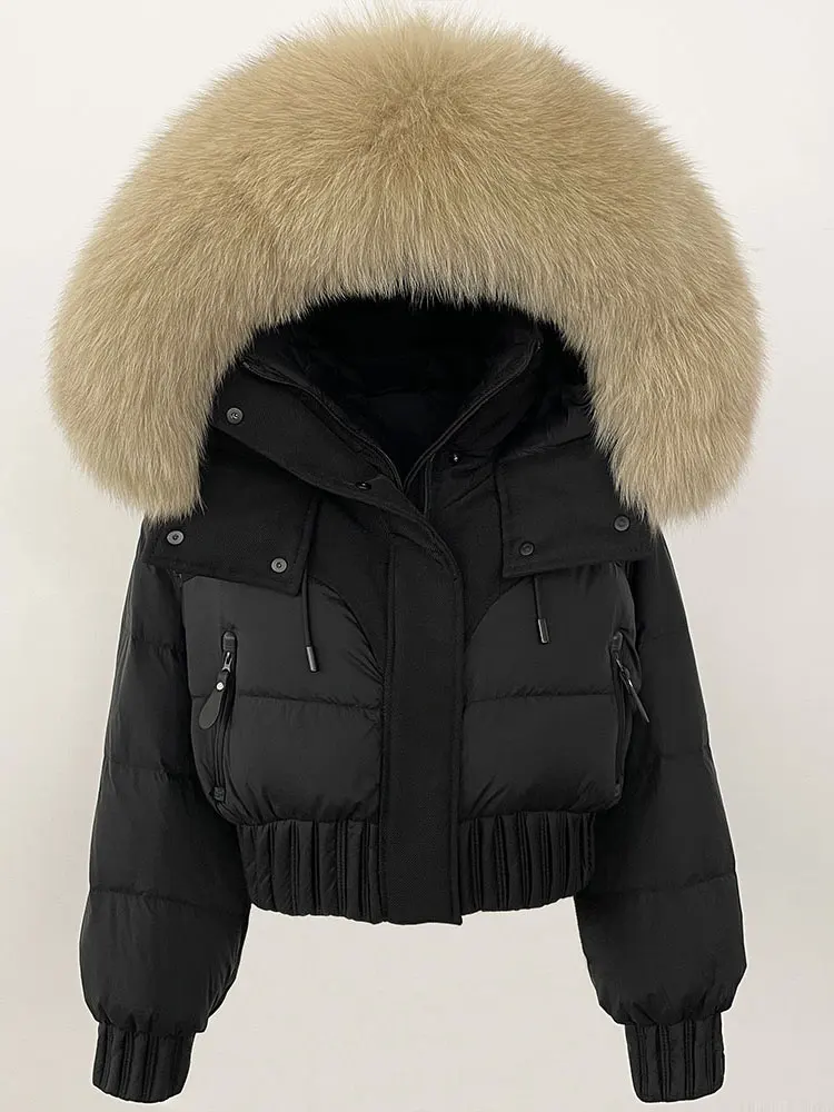 CXFS 2025 Winter Jacket Women Short Natural Real Raccoon Fox Fur Collar Hooded White Duck Down Coat Thick Warm Casual Outerwear