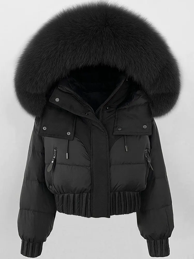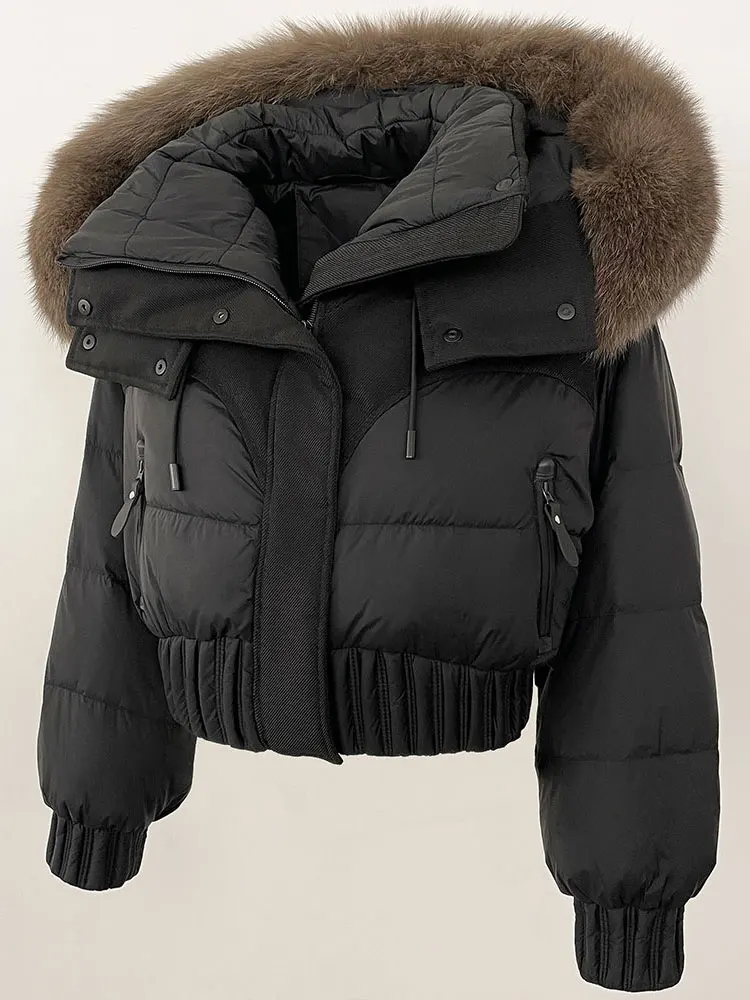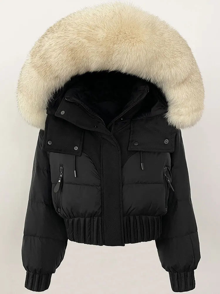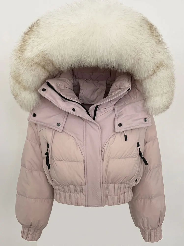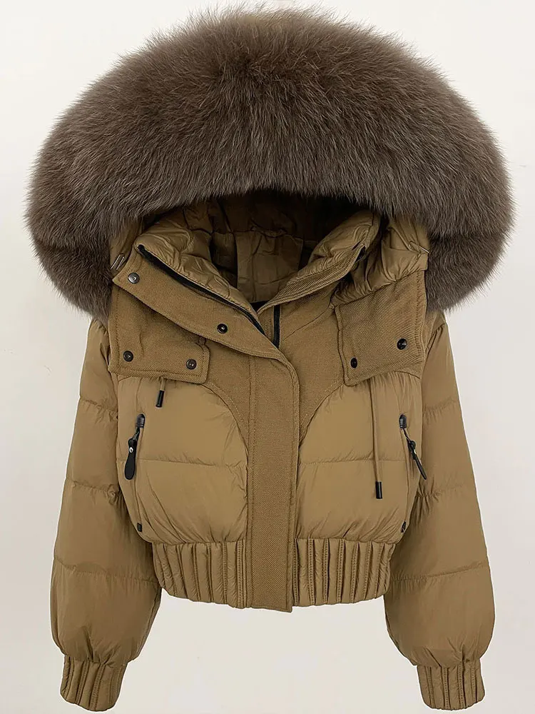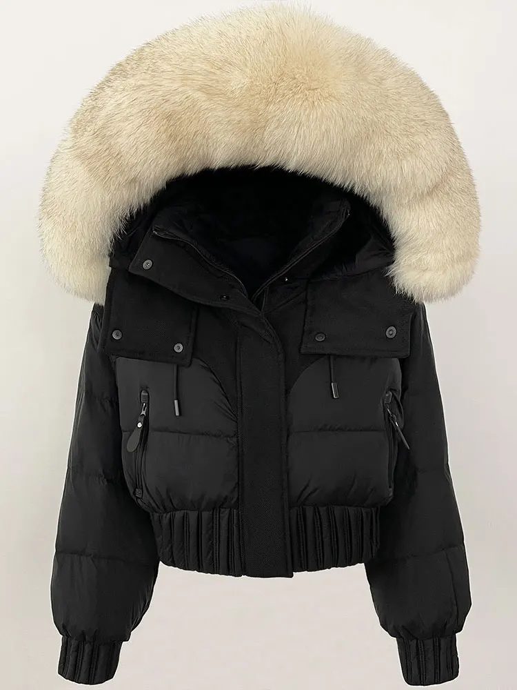 CXFS 2025 Winter Jacket Women Short Natural Real Raccoon Fox Fur Collar Hooded White Duck Down Coat Thick Warm Casual Outerwear
