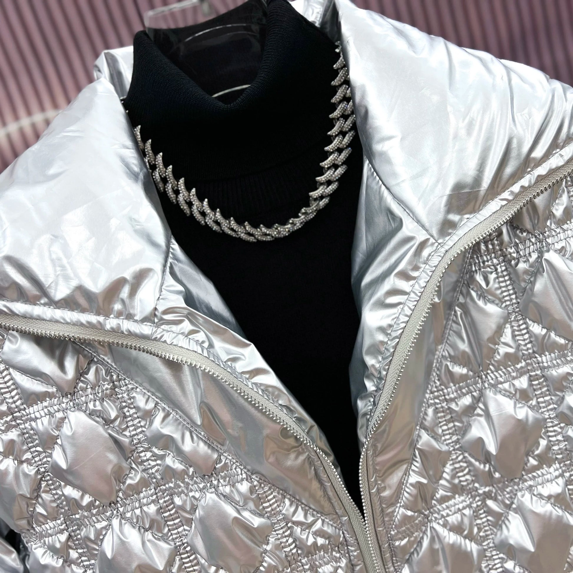 Step into winter with confidence and timeless style. This Solid Color Glossy Down Jacket combines retro charm with modern warmth, featuring a rhombus quilted design and a lustrous finish that elevates your cold-weather look. Designed for everyday wear, it keeps you warm, comfortable, and effortlessly fashionable.