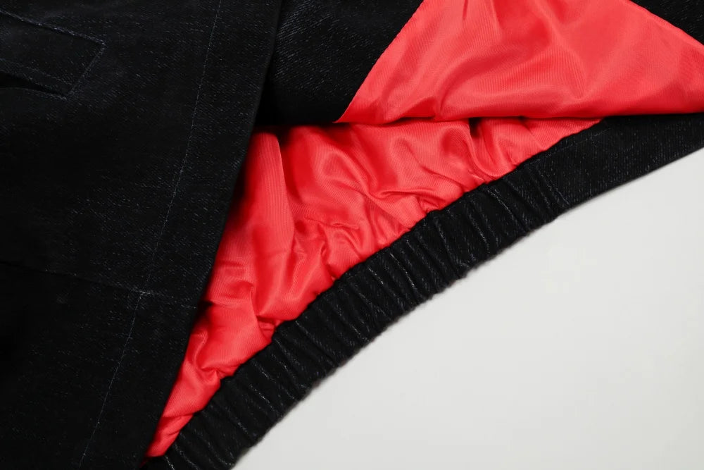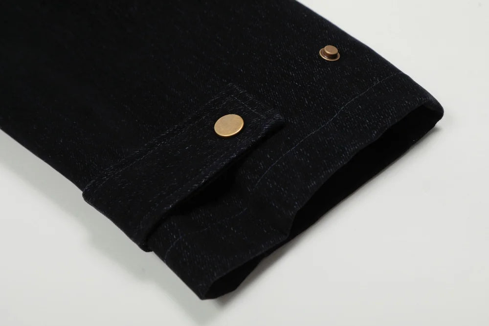 Spliced Cargo Denim Jacket Mens Retro Casual Autumn Lapel Single Breasted Long Sleeve Jeans Jacket Man Outerwear
