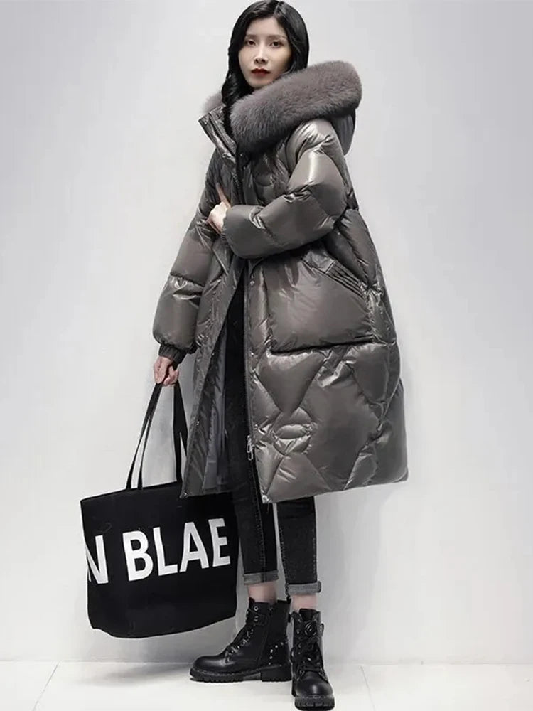 Fur Collar: Large fur trim adds elegance and extra warmth.