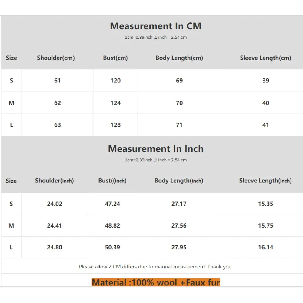 Material Composition: wool+faux fur