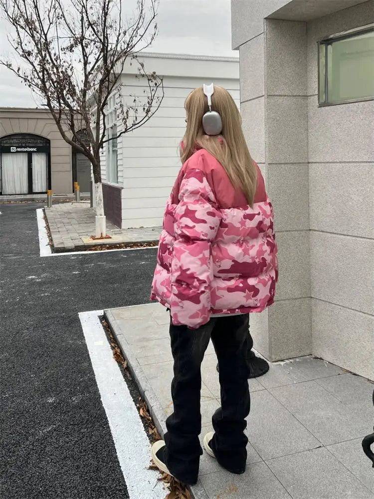 Hello Kitty Winter Women Camouflage Down Jacket Thicken Coat Sanrio Anime Kawaii Warm Cotton Clothes Tops Girl Student Loose